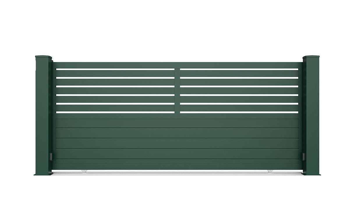 Sublimate your entrance with the IZERON DUO gate, an elegant solution for illuminating your exterior while securing your privacy. This model features open-worked horizontal Slats for a contemporary, lightweight look, complemented by a solid bottom section for total privacy. As part of our INITIAL range, it offers a neat design at a competitive price, combining economy with impeccable finishing. Designed in our workshop in France, our aluminum gates are covered by a 25-year warranty, giving you absolute peace of mind and a long-lasting design.