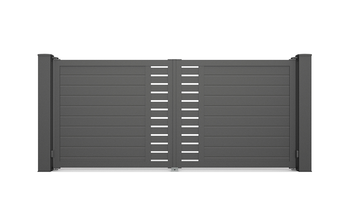 ISTRES is a solid model with an insert of open-work Slats for a bright, graphic touch to your entrance. Part of the INITIAL range, it meets budgetary criteria while maintaining a high standard of design and finishing. Designed and manufactured in aluminum at our production site in France, our gates are long-lasting and come with a 25-year warranty, a guarantee of solidity and lasting performance.